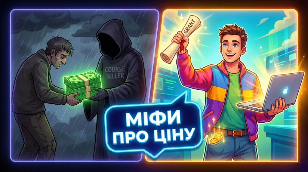 Давайте відверто: коли ви чуєте фразу “Увійти в IT”, ваша рука мимоволі тягнеться перевірити баланс на карті, а око починає сіпатися від цінників. Реклама обіцяє золоті гори, але просить за це 20, 30, а то й 50 тисяч гривень авансом. В умовах війни, коли донати на ЗСУ та фінансова безпека родини — пріоритет, такі витрати здаються не просто ризикованими, а іноді й божевільними.