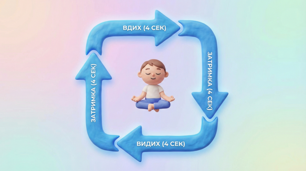 Спробуйте техніку “Квадратне дихання” (її використовують “морські котики” США для заспокоєння):