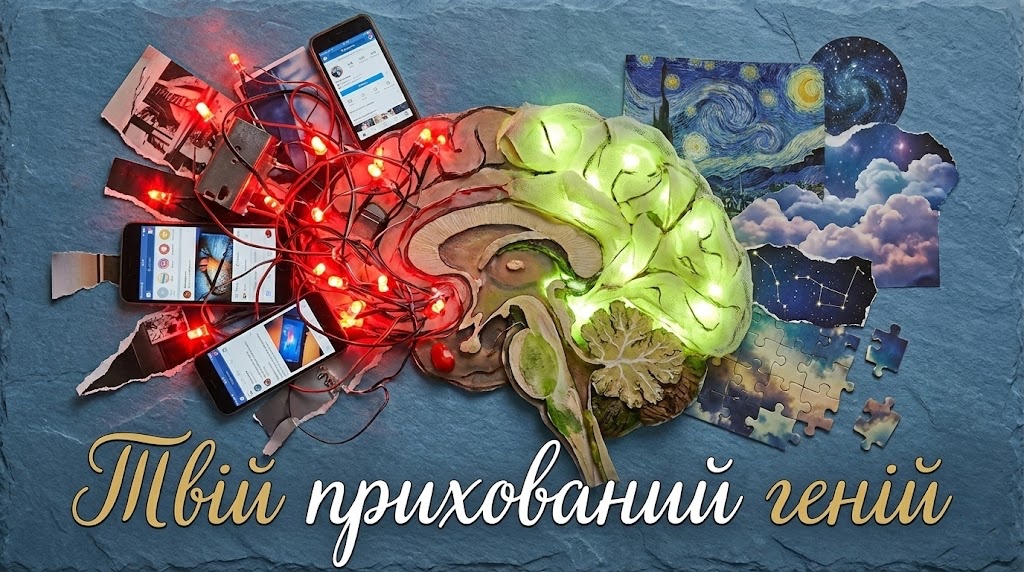 Щоб мозок знову навчився насолоджуватися нудьгою, йому треба знизити поріг чутливості до дофаміну. Зараз твій мозок звик до “гіпер-стимуляції” (відео по 15 секунд, яскраві кольори, гучні звуки). Реальне життя (хмари, дерева, тиша) для нього — це “нудний чорно-білий фільм”. Влаштуй собі день (або хоча б вечір) без екранів. Спочатку буде ломка. Тобі буде здаватися, що час зупинився. Але через годину-дві мозок адаптується. І раптом ти помітиш, як гарно падає світло на стіл. Або тобі прийде в голову ідея: “А чому б не переставити меблі?”. Або: “А напишу я книгу!”. Це прокинувся твій внутрішній творець.