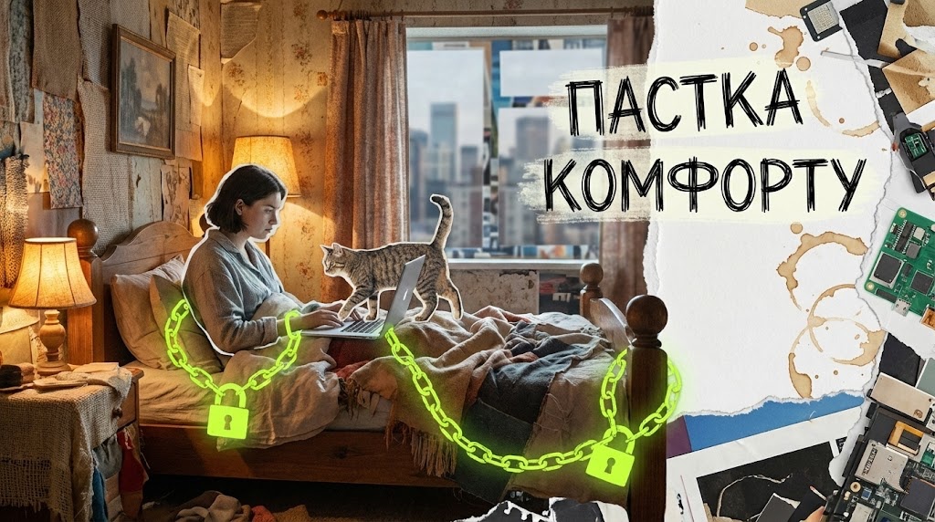 Головна проблема ремоуту — це втрата контексту. Ти сидиш вдома, і твоя квартира перетворюється на офіс, спальню, спортзал і ресторан одночасно. Твій мозок перестає розуміти, де відпочивати. Ти прокидаєшся, бачиш ноутбук — і вже відчуваєш тривогу. Це називається “ефект дня бабака”. Тижні зливаються в один довгий, сірий день.