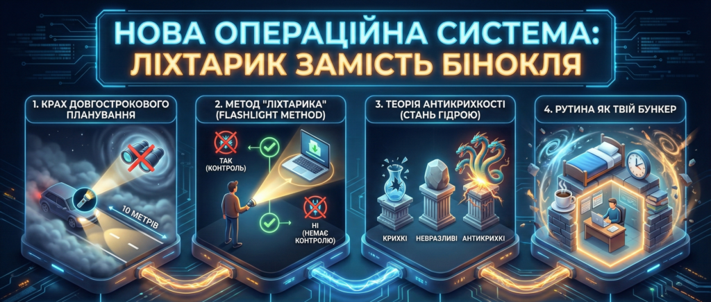 Це і є нова реальність. Планувати на рік — це розкіш. Планувати на 5 років — це мазохізм. Твій новий горизонт — це “сьогодні” і “завтра”.